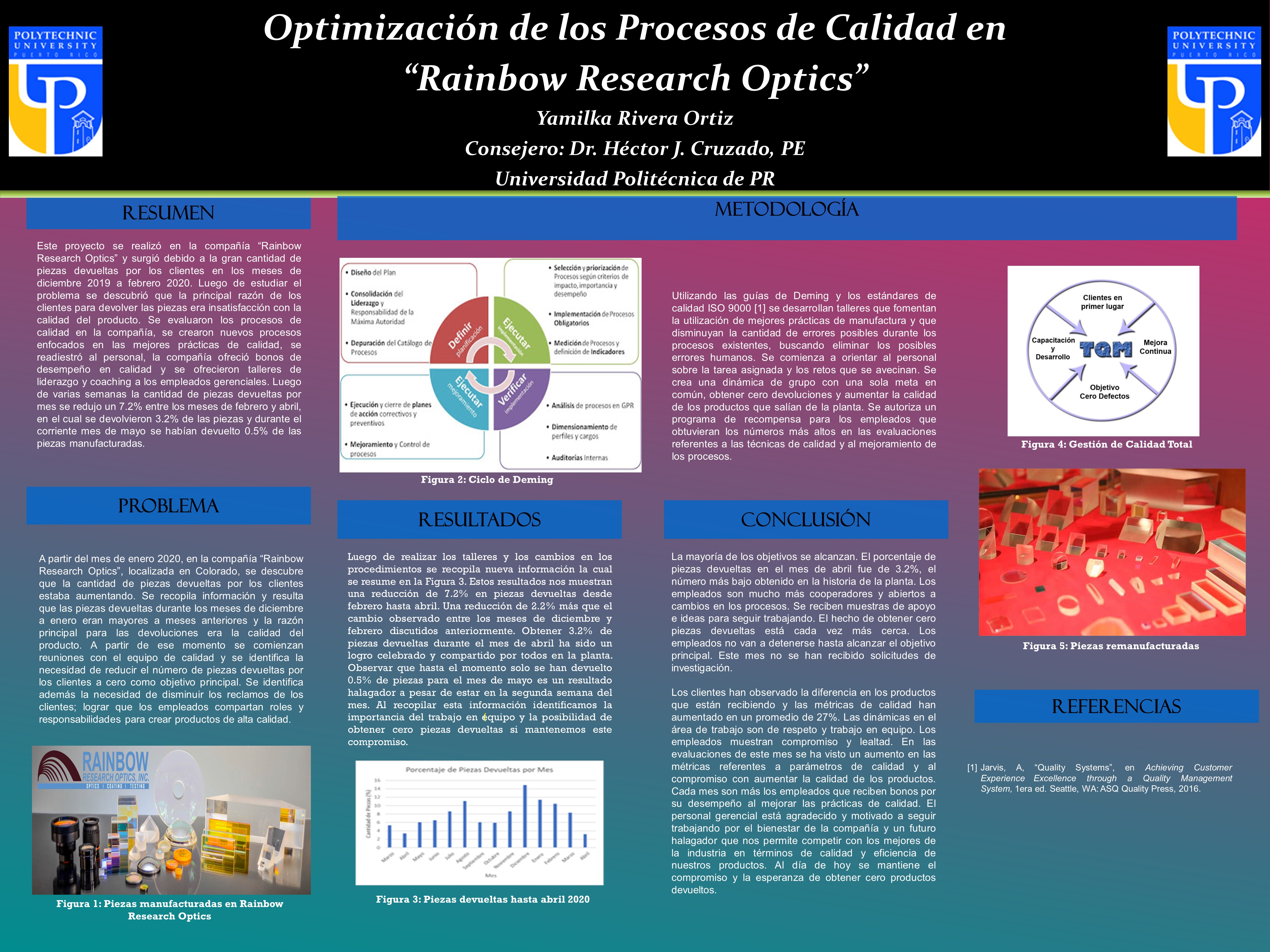 Rivera Ortiz, Y. (2020). Optimización de los Procesos de Calidad en “Rainbow Research Optics” [Unpublished manuscript]. Graduate School, Polytechnic University of Puerto Rico.