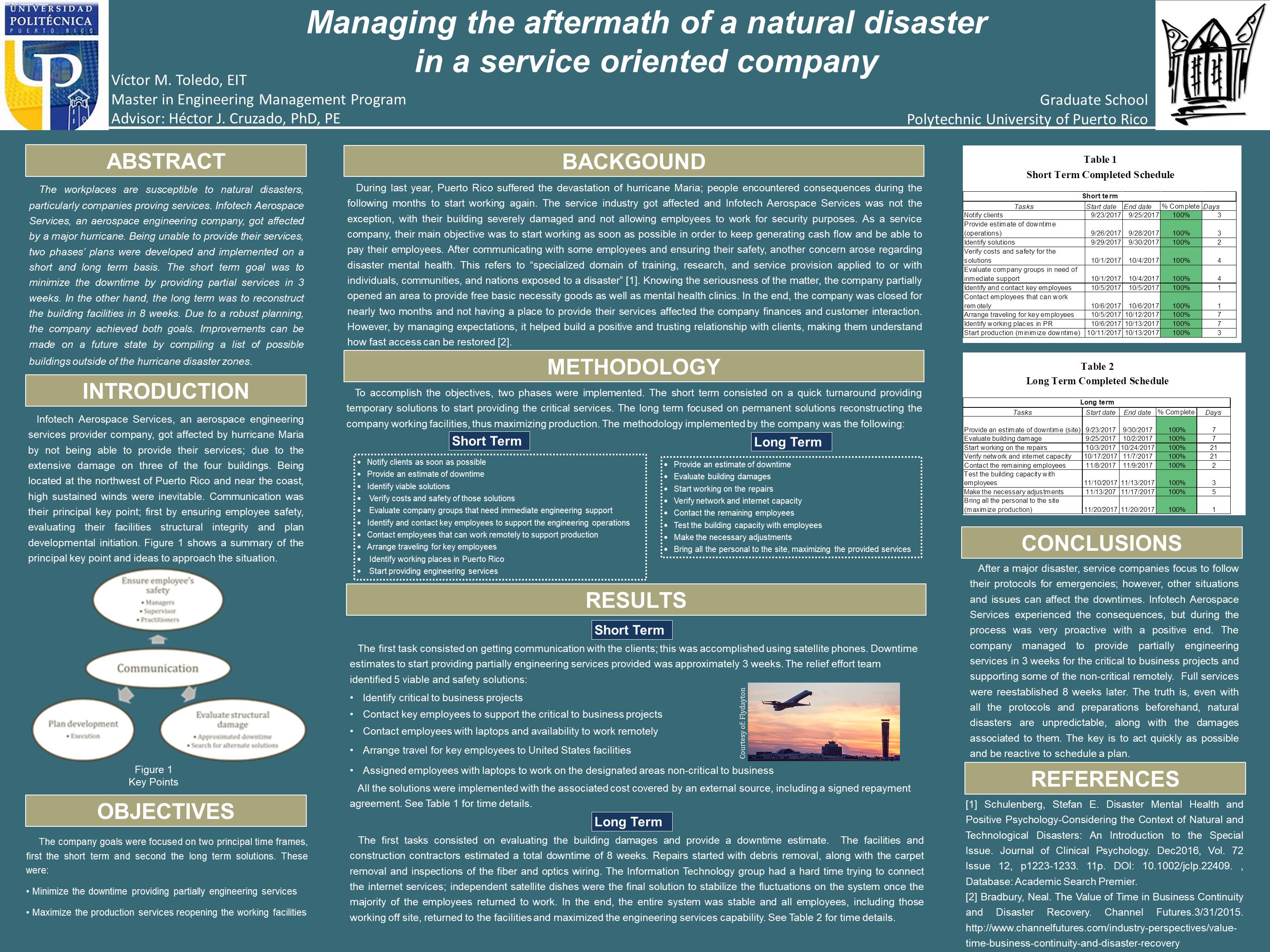| dc.identifier.citation | Toledo, V. M. (2018). Managing the aftermath of a natural disaster in a service oriented company [Unpublished manuscript]. Graduate School, Polytechnic University of Puerto Rico. | en_US |