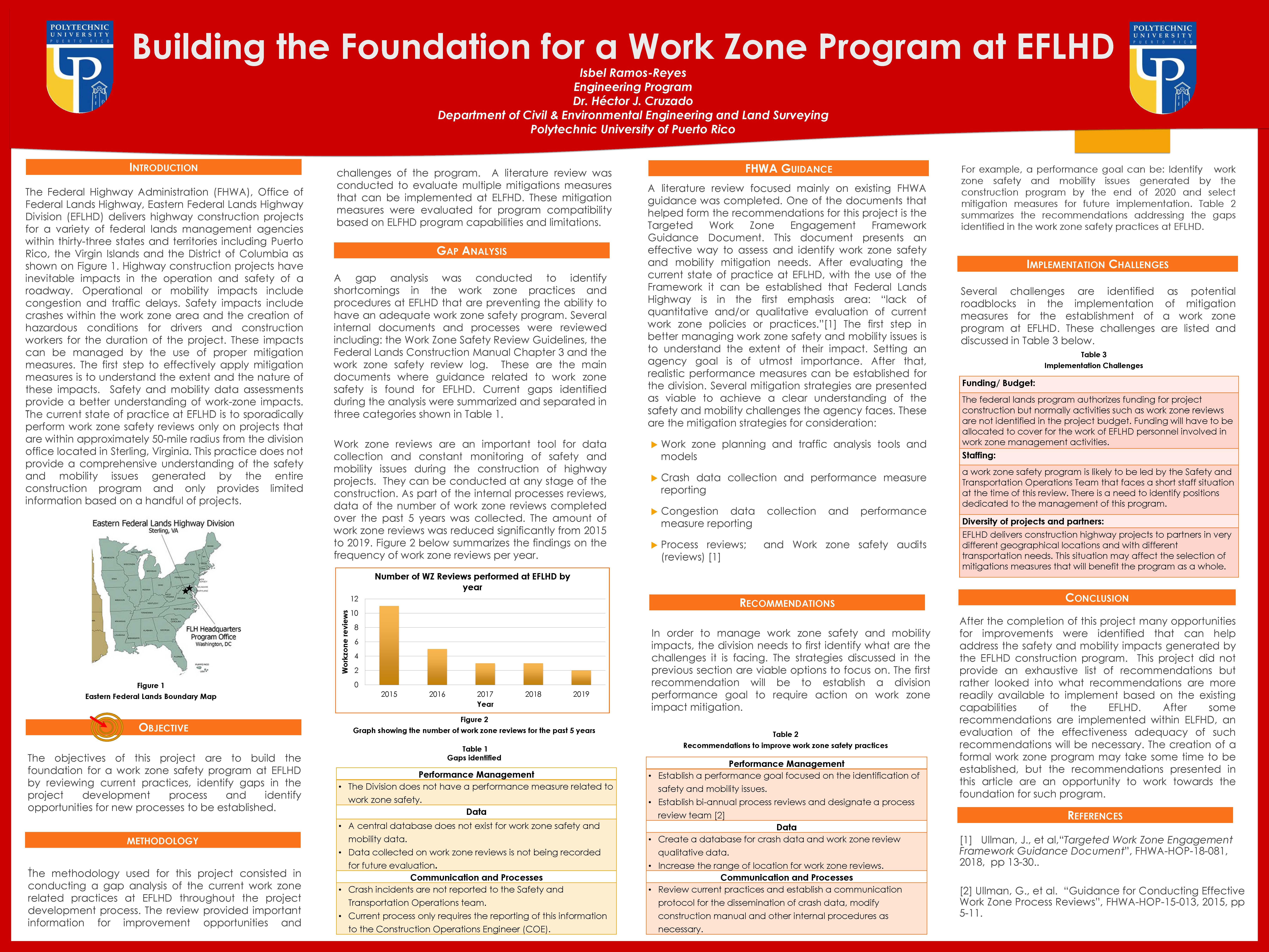 | dc.identifier.citation | Ramos Reyes, I. (2019). Building the foundation for a Work Zone Program at EFLHD [Unpublished manuscript]. Graduate School, Polytechnic University of Puerto Rico. | en_US |