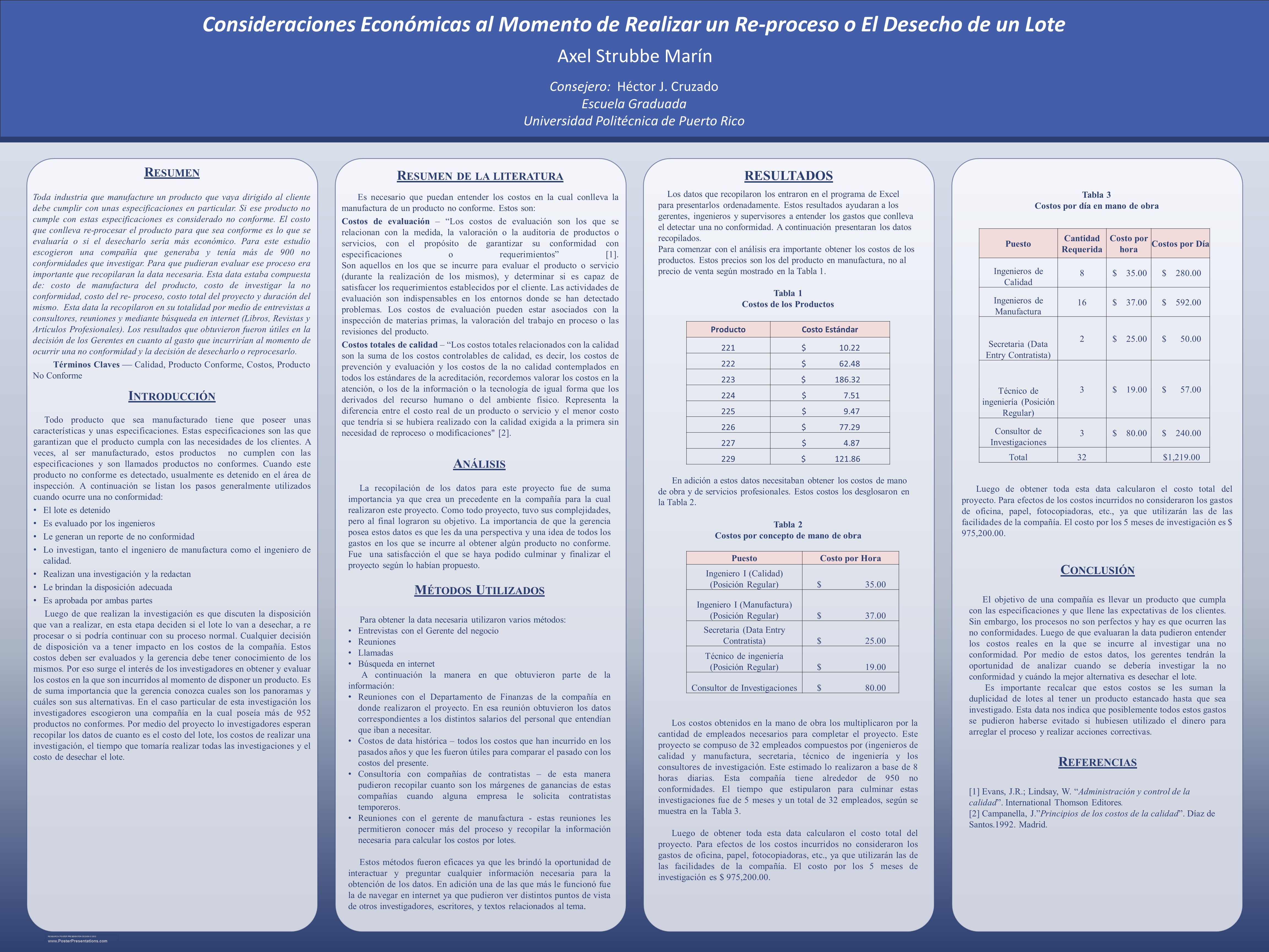 Strubbe Marin, A. (2015). Consideraciones Económicas al Momento de Realizar un Re-proceso o El Desecho de un Lote [Unpublished manuscript]. Graduate School, Polytechnic University of Puerto Rico.