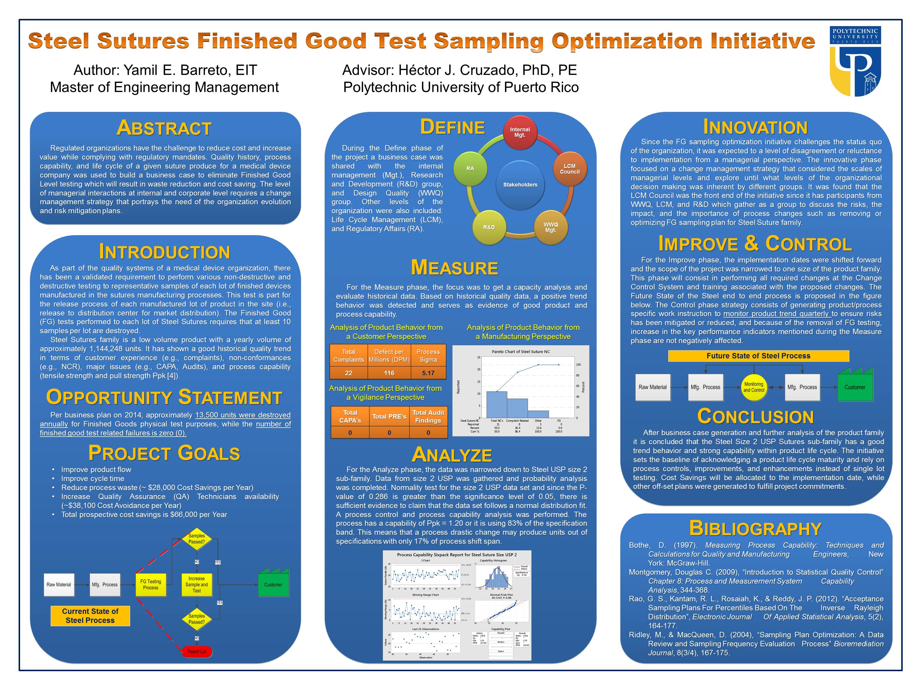 Barreto, Y. E. (2015). Steel Sutures Finished Good Test Sampling Optimization Initiative [Unpublished manuscript]. Graduate School, Polytechnic University of Puerto Rico.