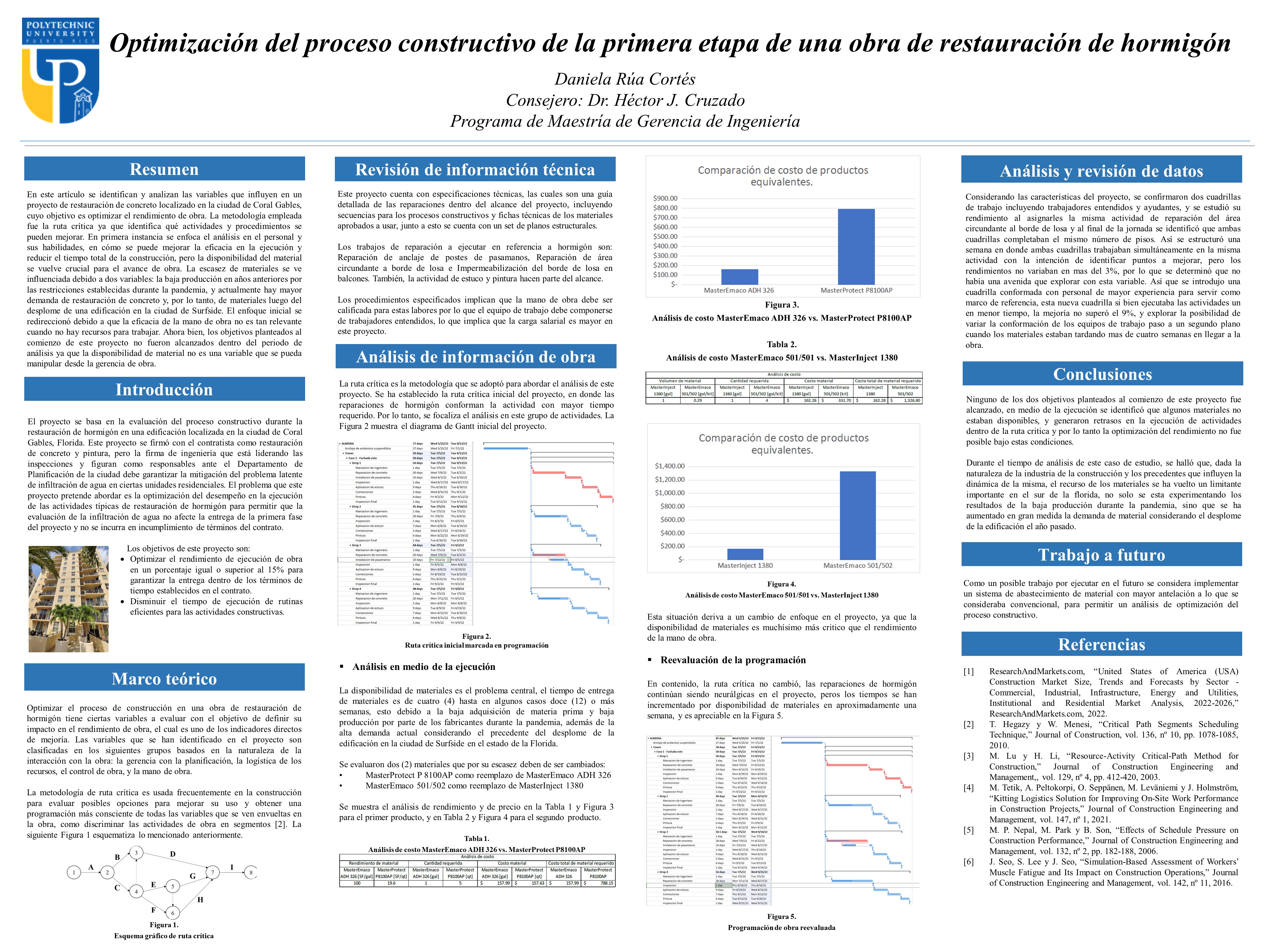 Rúa Cortés, D. (2022). Optimización del proceso constructivo de la primera etapa de una obra de restauración de hormigón [Unpublished manuscript]. Graduate School, Polytechnic University of Puerto Rico.