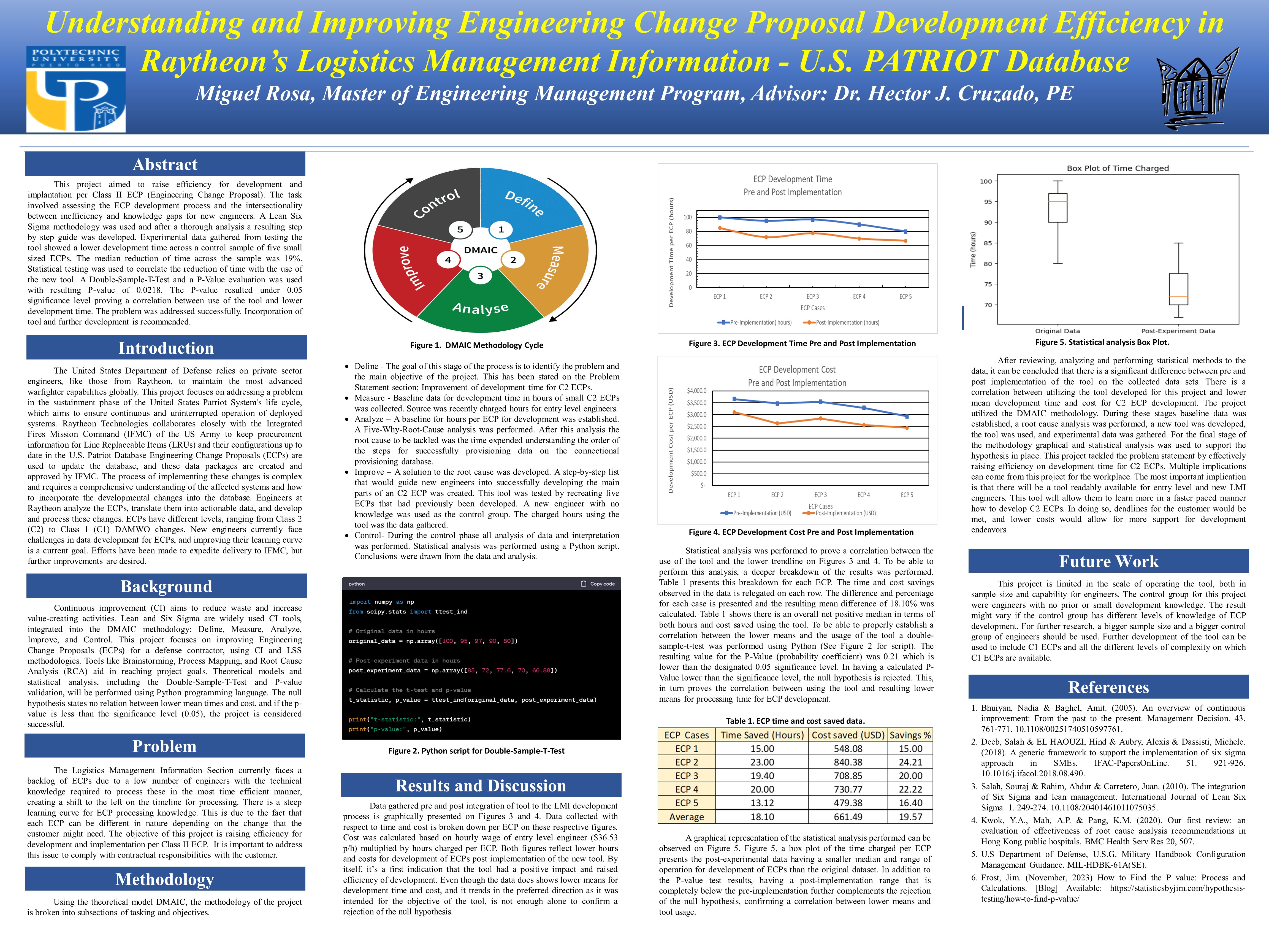 Rosa Morales, M. (2023). Understanding and Improving Engineering Change Proposal Development Efficiency in Raytheon’s Logistics Management Information - U.S. PATRIOT Database [Unpublished manuscript]. Graduate School, Polytechnic University of Puerto Rico.