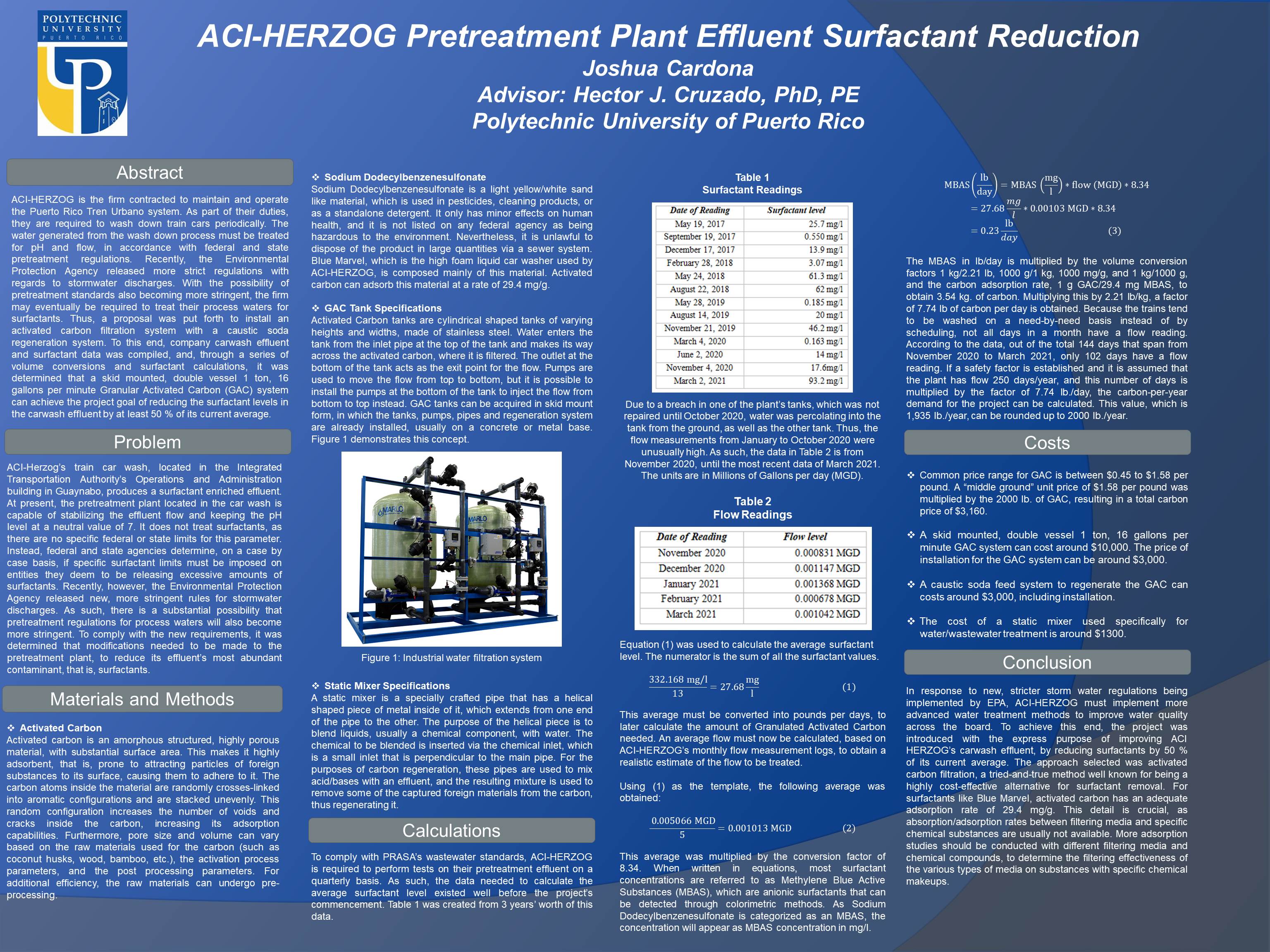 Cardona Girona, J. (2021). ACI-HERZOG Pretreatment Plant Effluent Surfactant Reduction [Unpublished manuscript]. Graduate School, Polytechnic University of Puerto Rico.