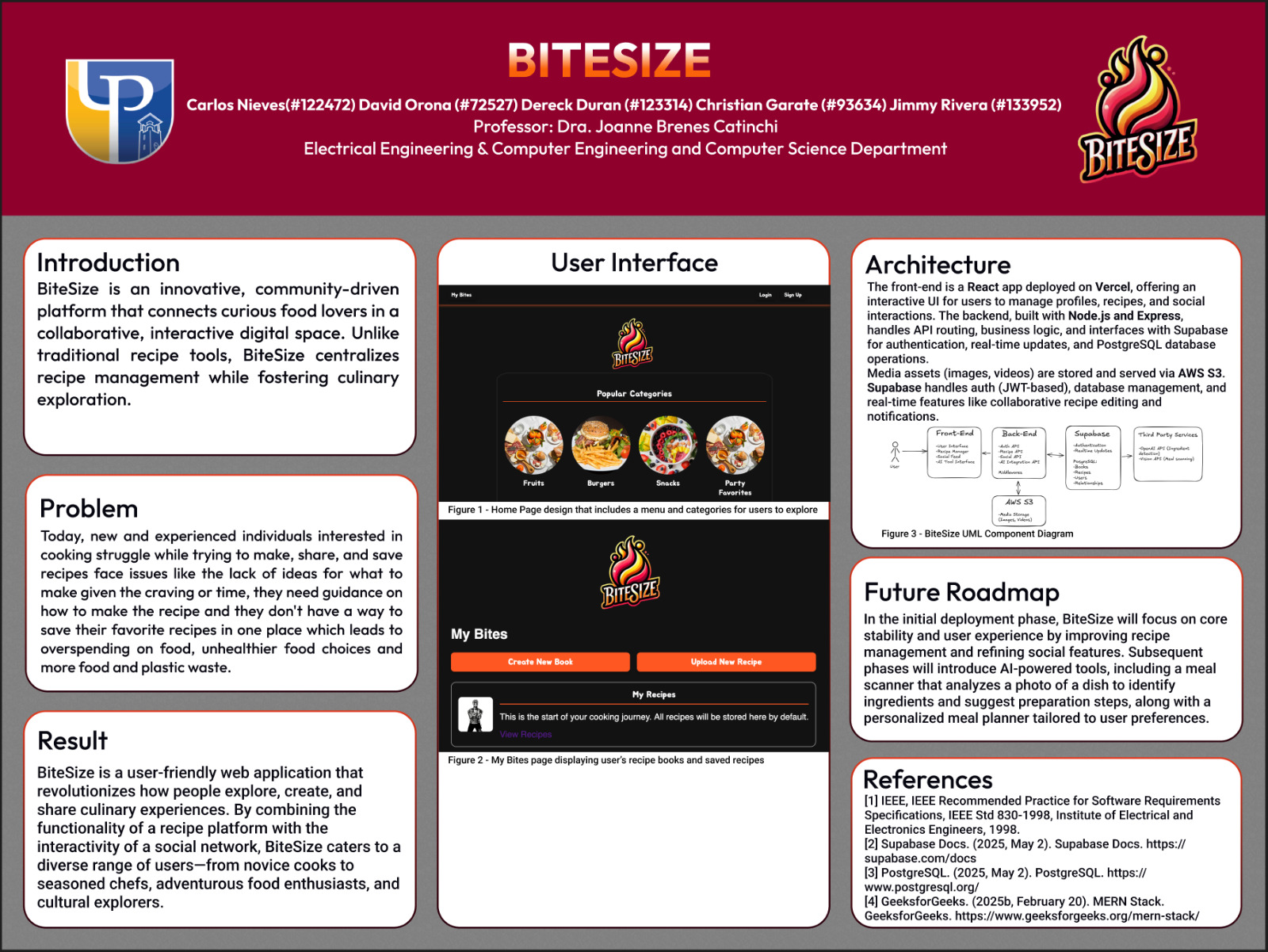 Nieves, C., Orona, D., Duran, D., Garate, C. & Rivera, J. (2024). BiteSize [Research Poster]. Electrical & Computer Engineering, and Computer Science Department, Polytechnic University of Puerto Rico.