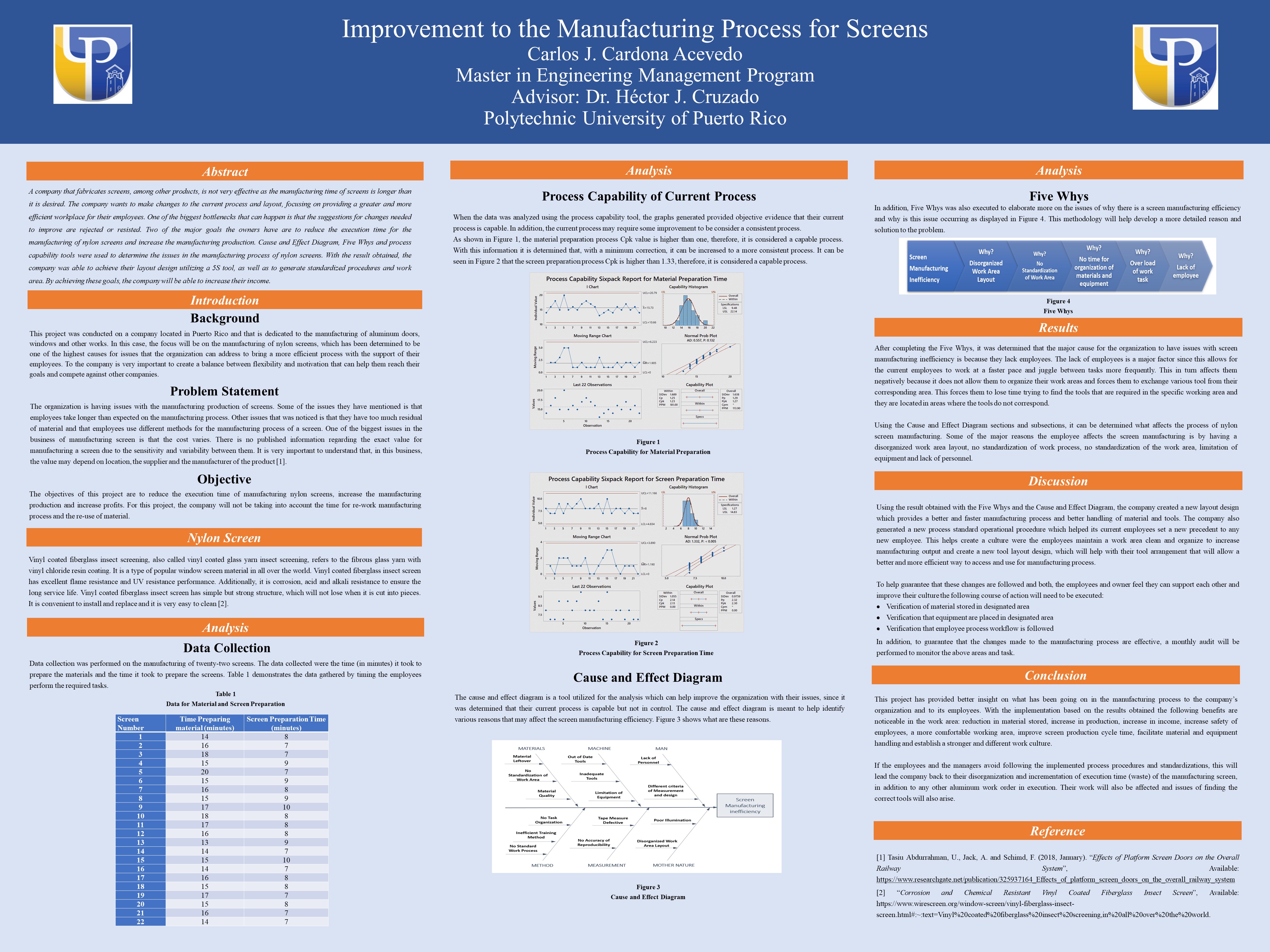 | dc.identifier.citation | Cardona Acevedo, C. J. (2020). Improvement to the Manufacturing Process for Screens [Unpublished manuscript]. Graduate School, Polytechnic University of Puerto Rico. | en_US |