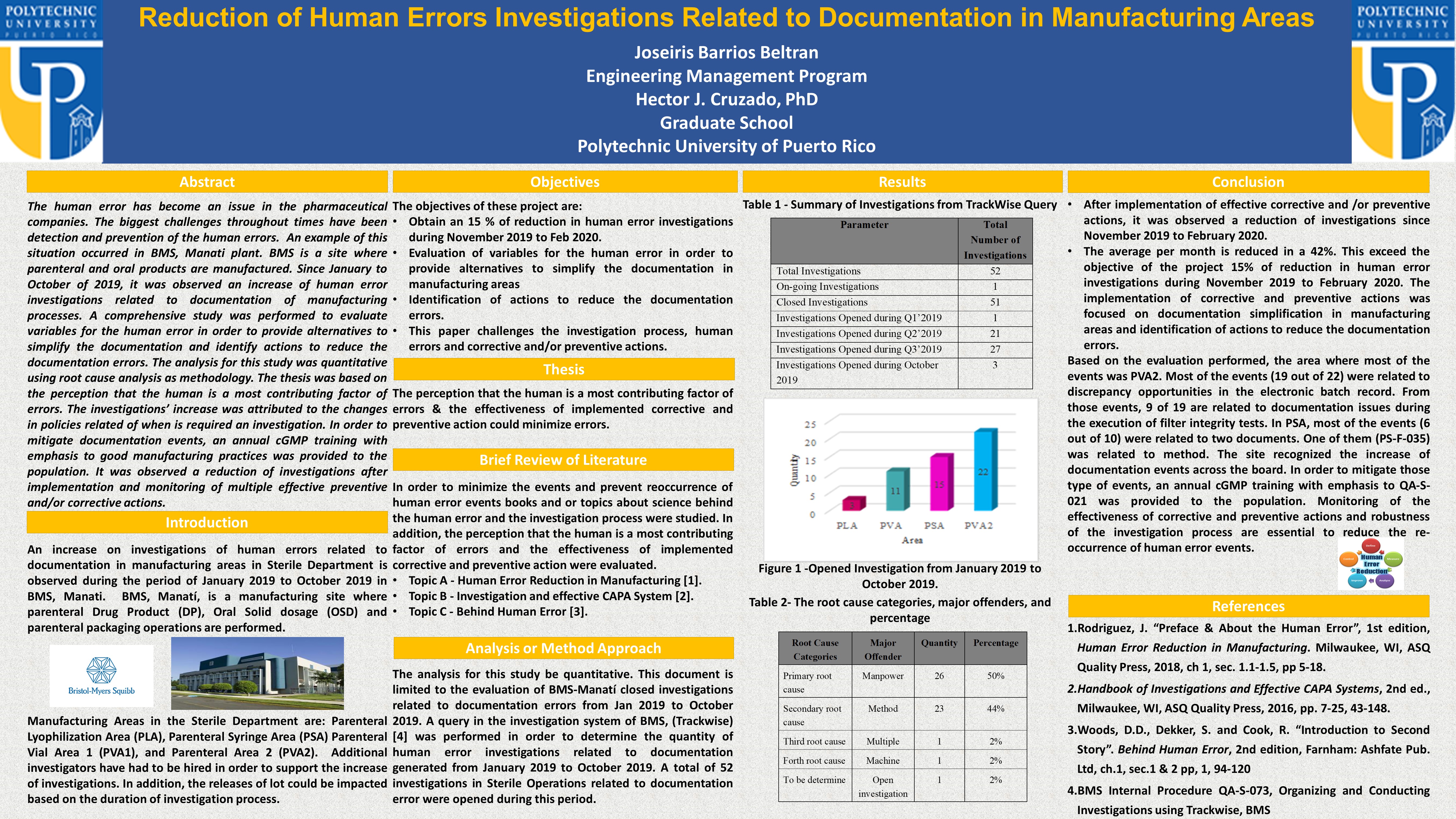Barrios Beltran, J. (2019). Reduction of Human Errors Investigations Related to Documentation in Manufacturing Areas [Unpublished manuscript]. Graduate School, Polytechnic University of Puerto Rico.