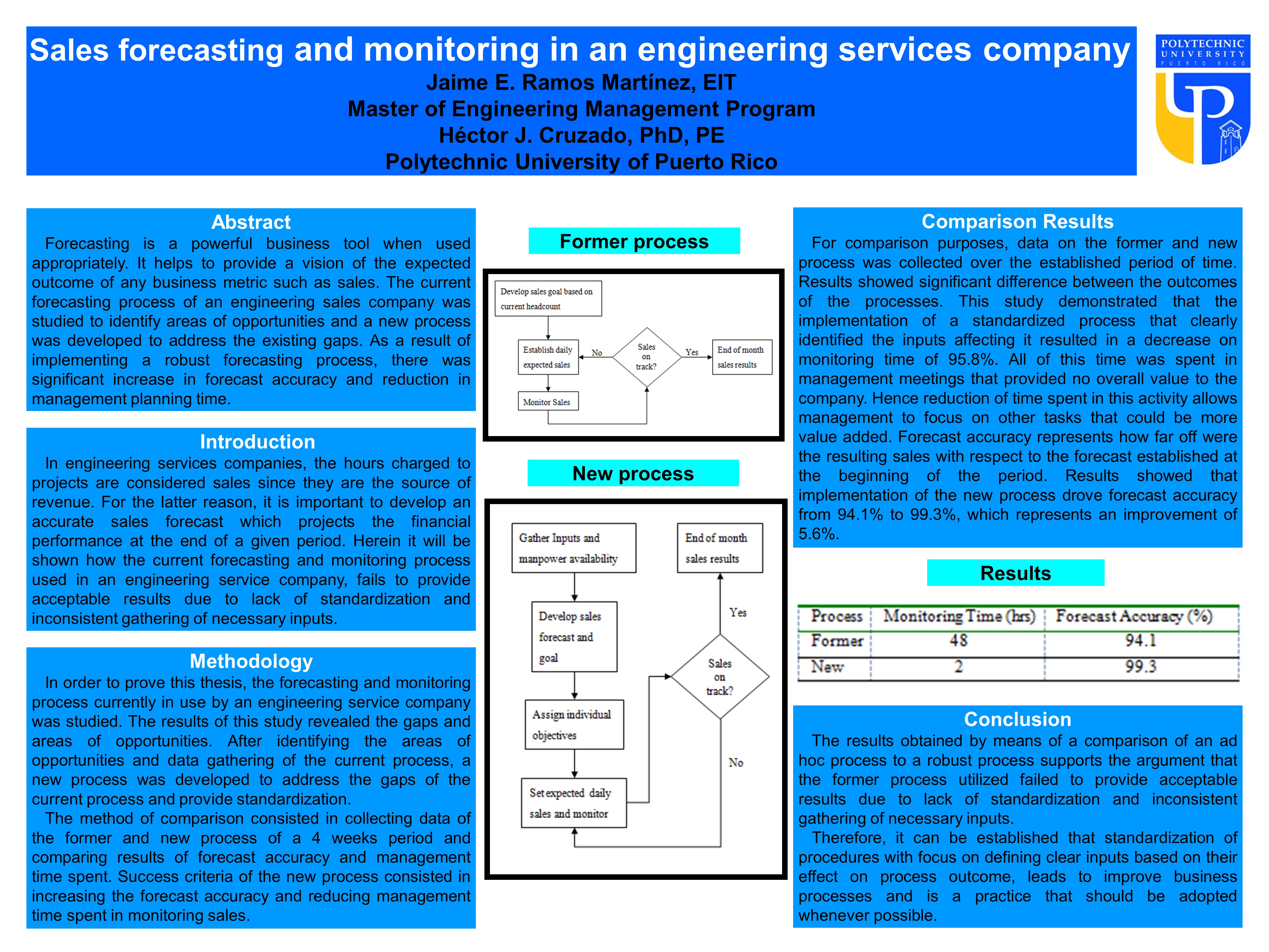 Ramos, J. E. (2015). Sales Forecasting and Monitoring in an Engineering Services Company [Unpublished manuscript]. Graduate School, Polytechnic University of Puerto Rico.